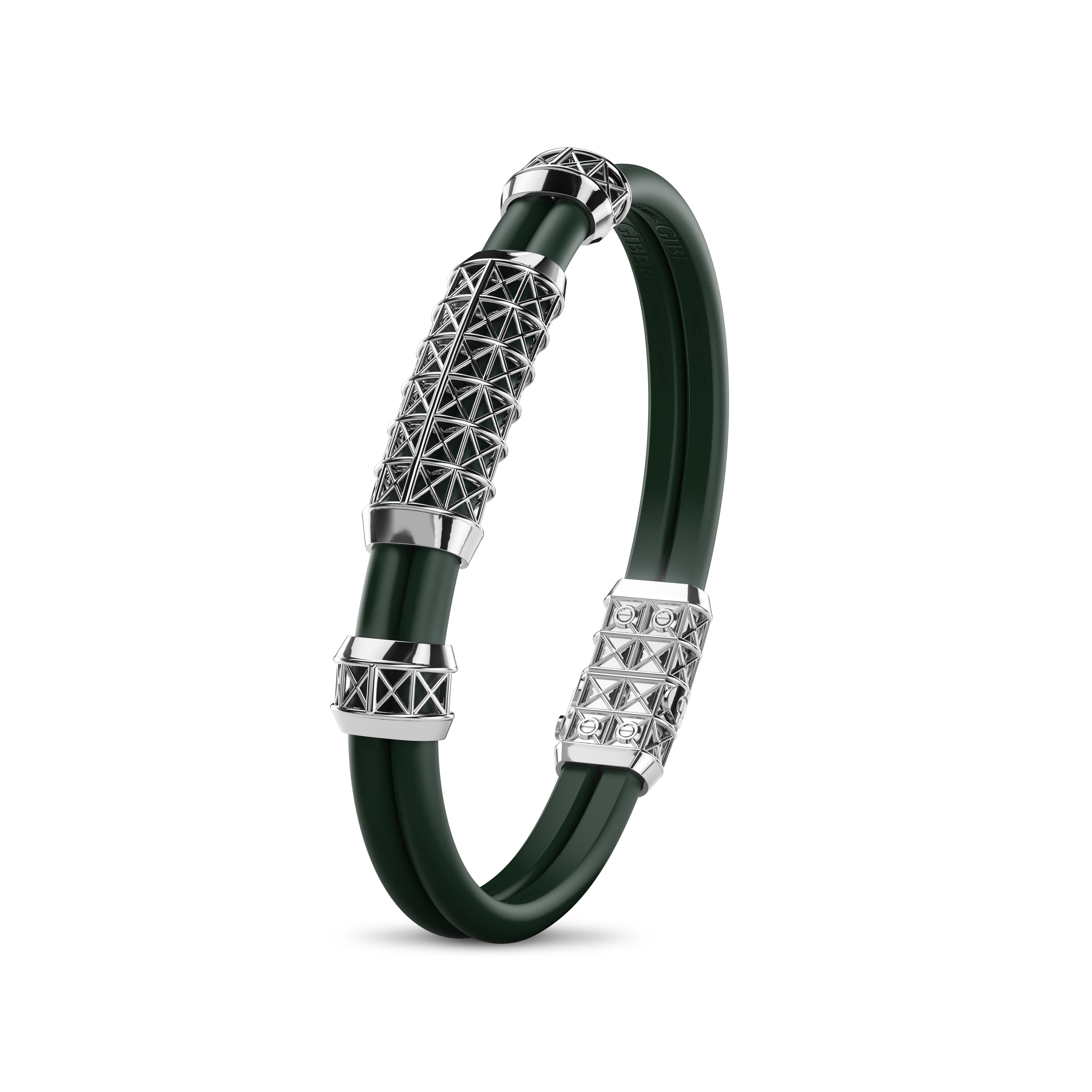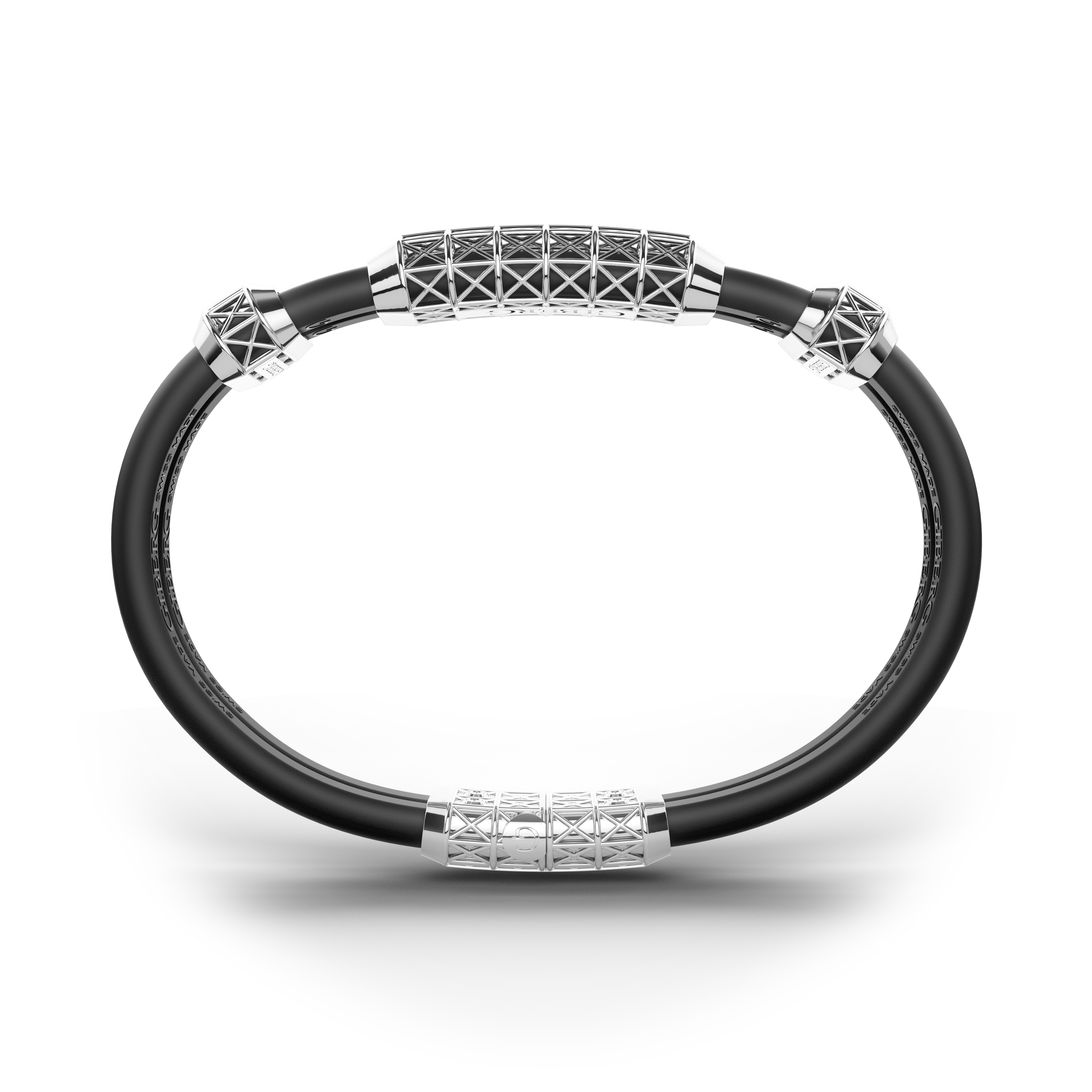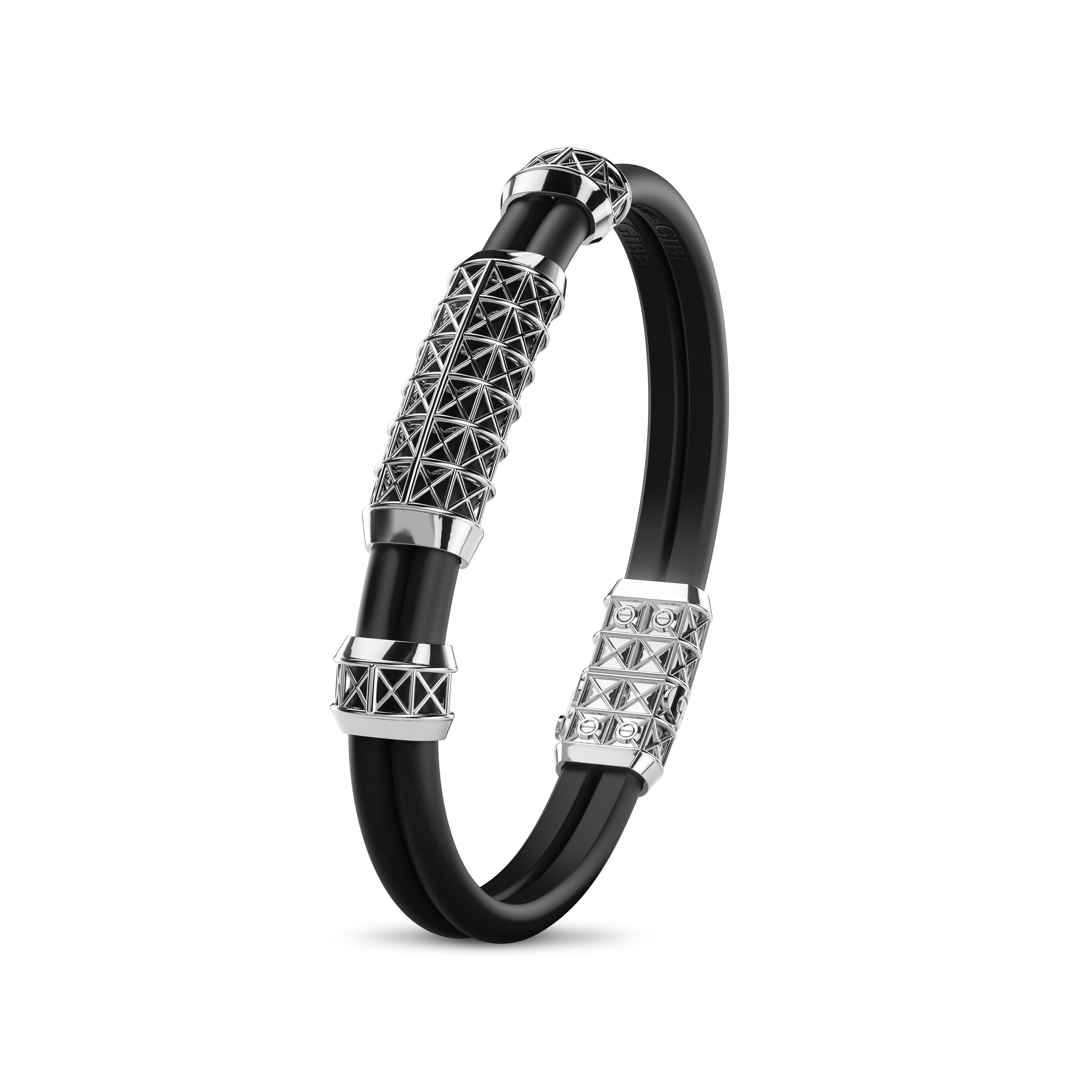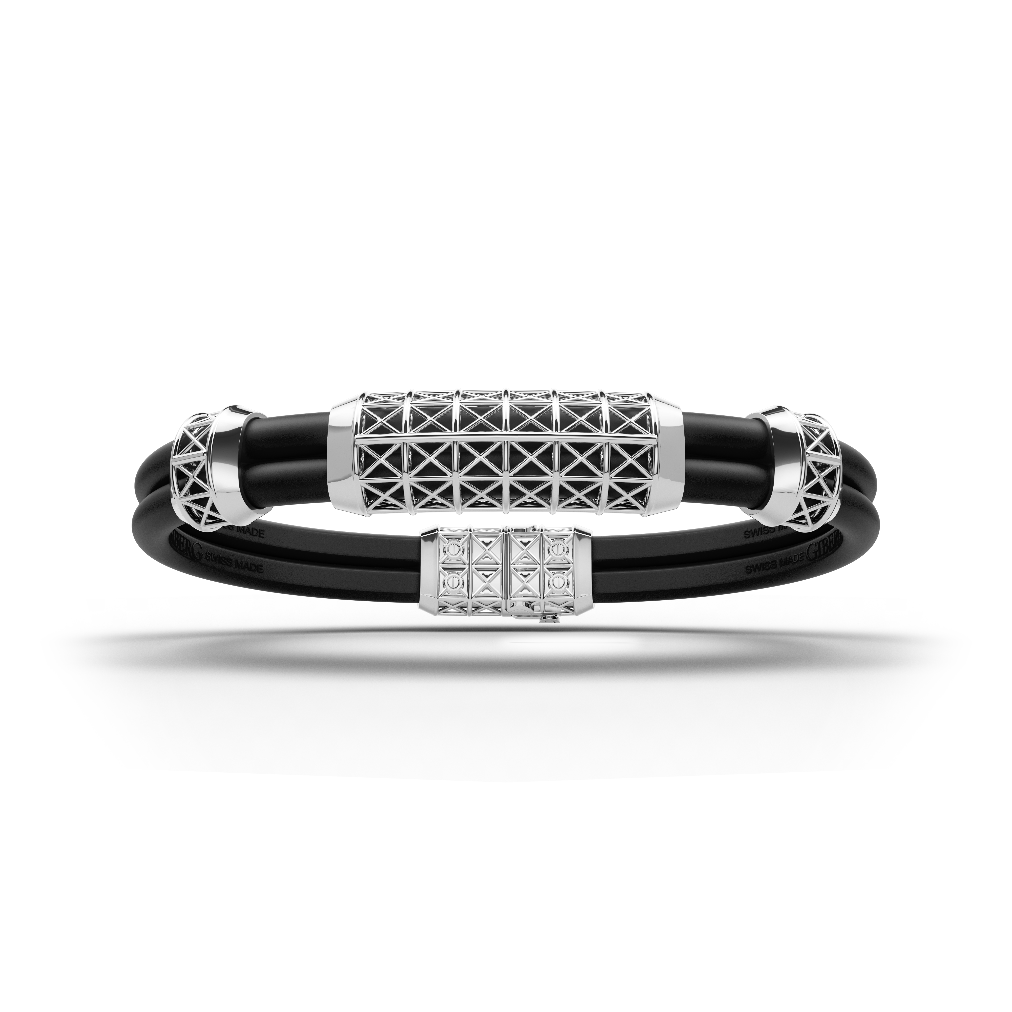 Exuding a commanding presence, this bracelet is crafted from White Gold. The rubber band offers a comfortable and flexible fit, while the medium centerpiece adds distinction. Overall, its design captures the essence of modern sophistication.