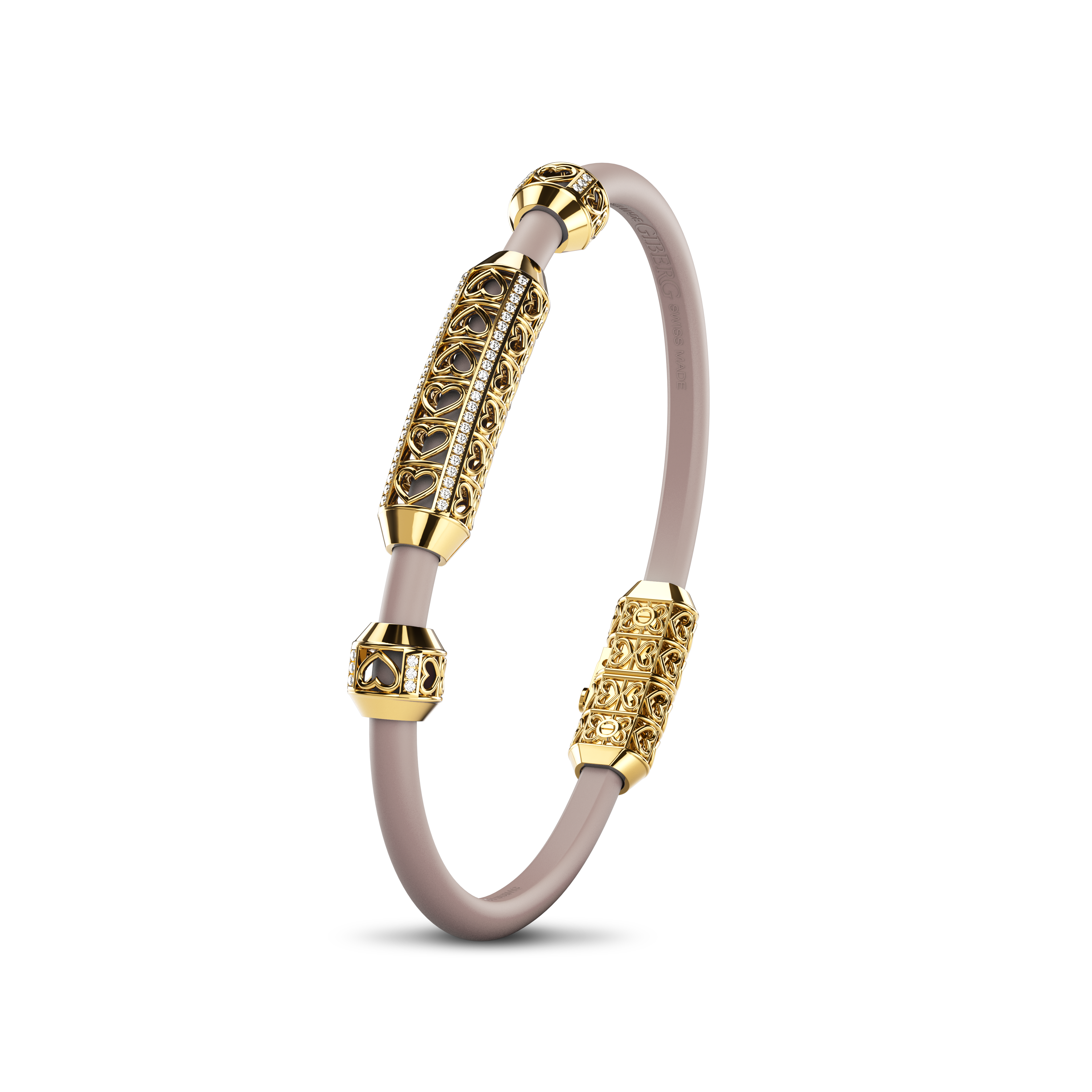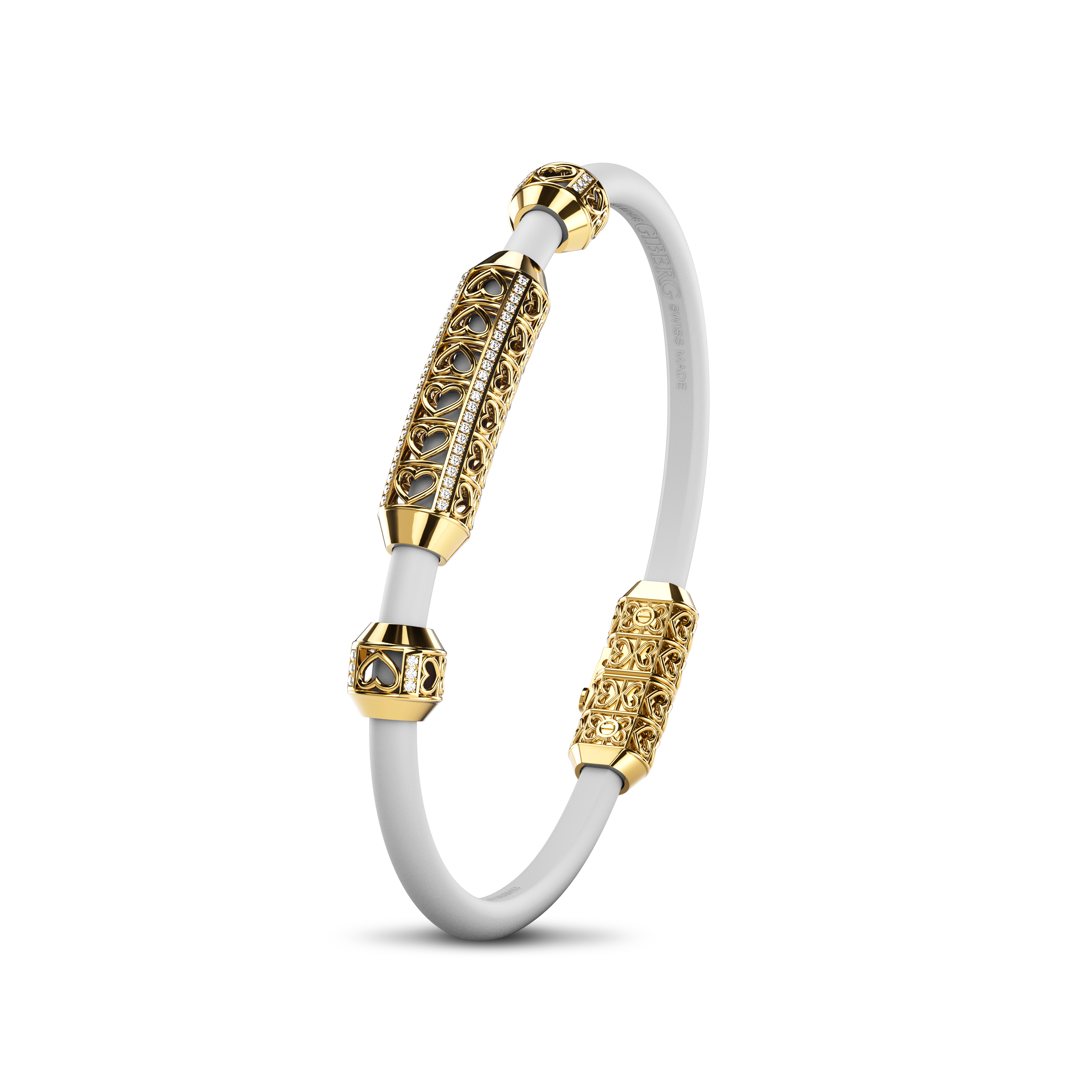 The Amphora Bracelet captures Giberg's artistic vision by transcending traditional jewelry design. It symbolizes transformation and elegance, crafted from 18K gold and adorned with diamonds. Each piece features vibrant bands in various colors, blending modern contrast with timeless sophistication. The Amphora Bracelet is not just a piece of jewelry; it is an artistic statement of individuality, luxury, and refined craftsmanship.