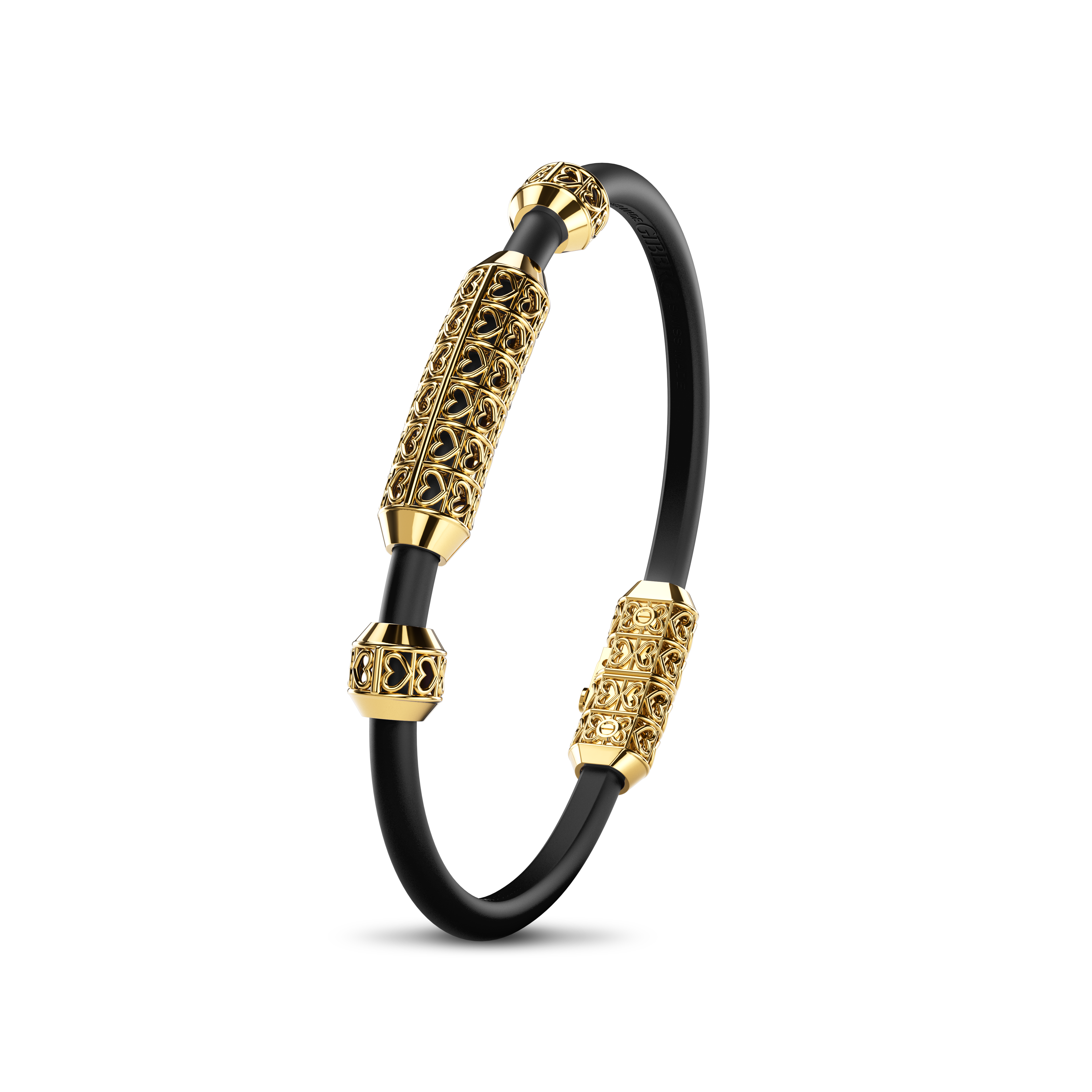 A true piece of artistry, made from Yellow Gold. The rubber band offers a comfortable and flexible fit, while the large centerpiece adds distinction. Overall, it stands as a testament to refined beauty and grace.