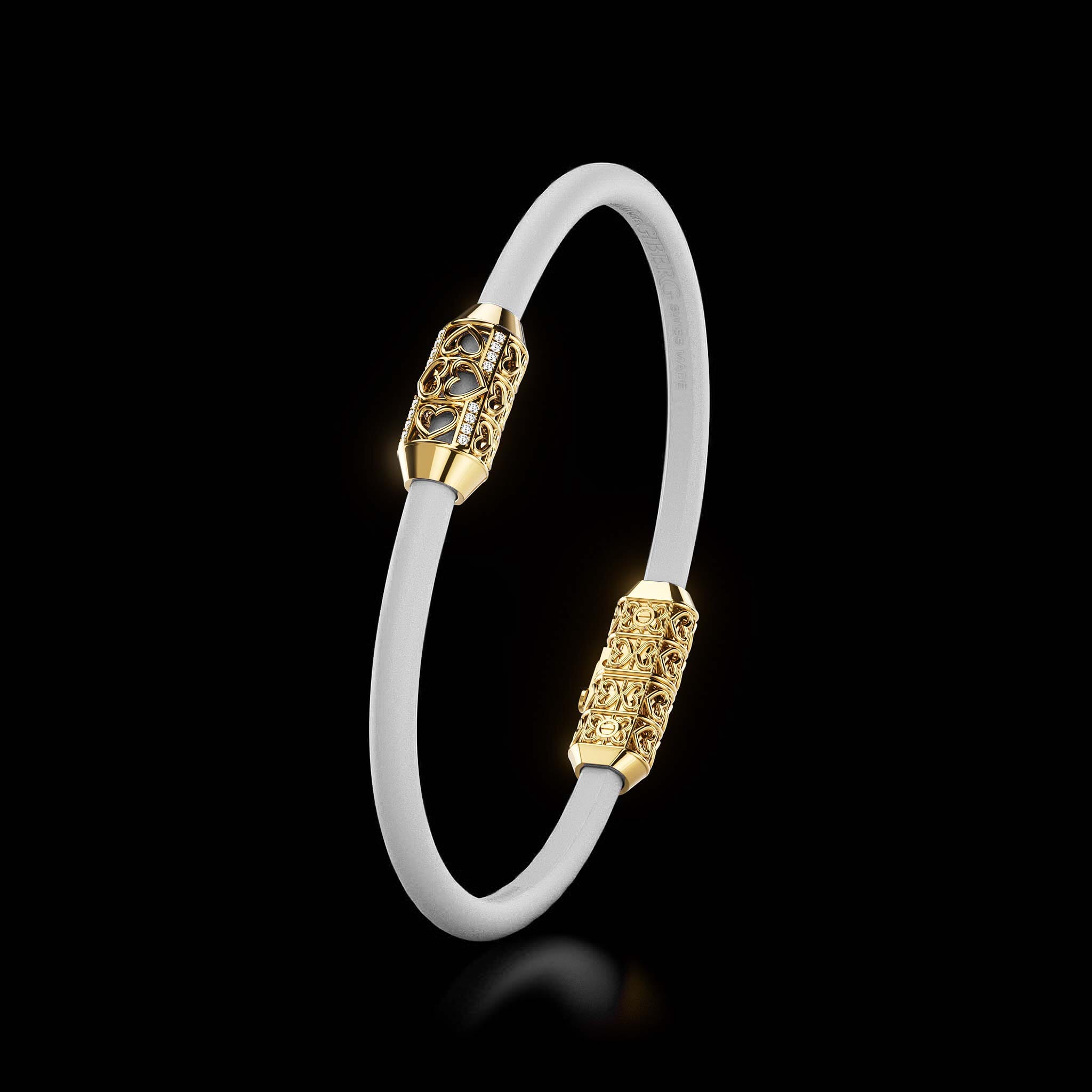 The Amphora Bracelet captures Giberg's artistic vision by transcending traditional jewelry design. It symbolizes transformation and elegance, crafted from 18K gold and adorned with diamonds. Each piece features vibrant bands in various colors, blending modern contrast with timeless sophistication. The Amphora Bracelet is not just a piece of jewelry; it is an artistic statement of individuality, luxury, and refined craftsmanship.